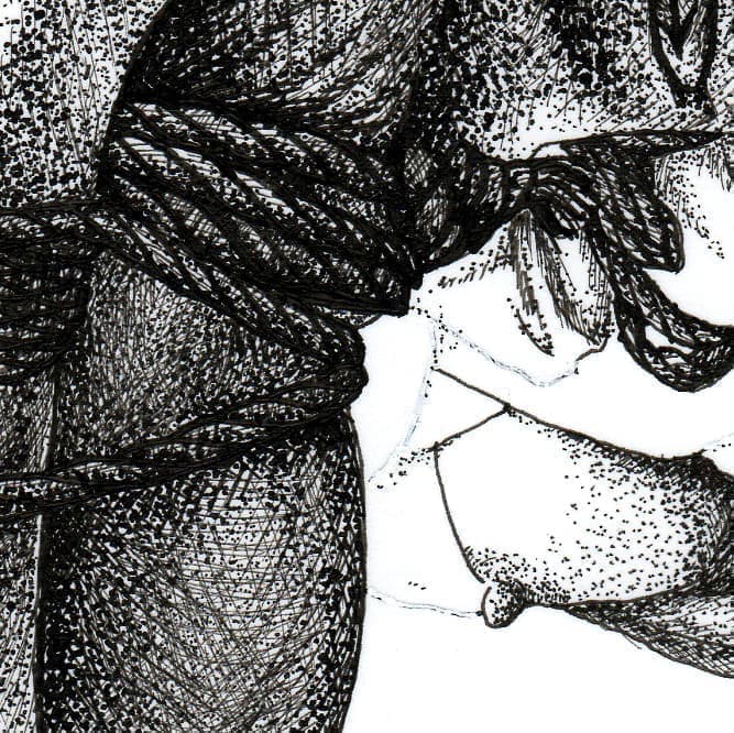 彼は製図用のペンを使用して絵を描く。ペン先の太さが1mmにも満たない0.01mm~0.5mmのものを使用する。そして数えきれないほどの線を描き、数えきれないほどの点を打つ。