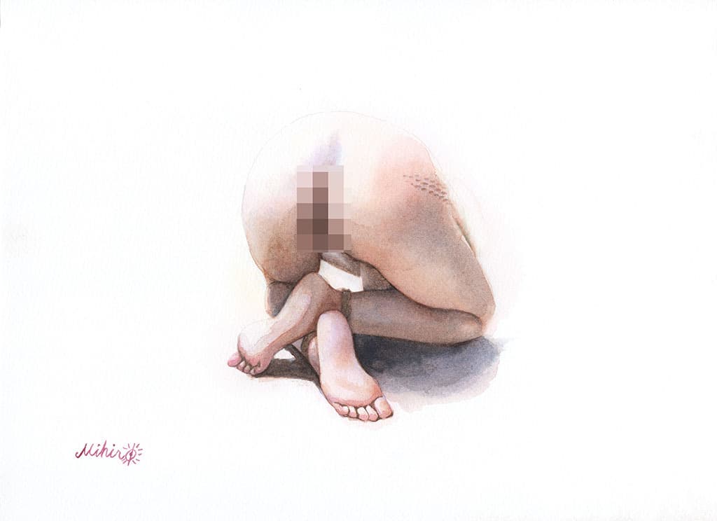 しかし、日本では女性器や緊縛の表現はタブーとされており、講師の仕事を解雇され、広告の仕事も降ろされてしまう。